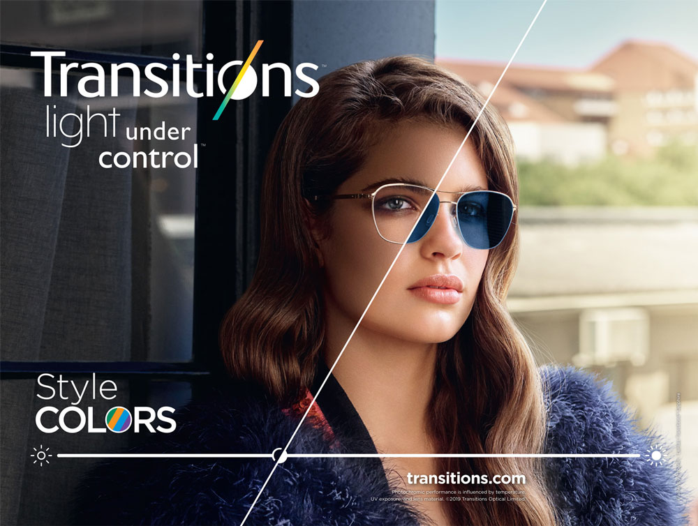 Διατίθενται σε 7 ζωντανά χρώματα που ταιριάζουν σε κάθε στυλ: Iconic Colors (γκρι, καφέ, πράσινο γραφίτη) και Style Colors (σμαραγδί, ζαφείρι, αμέθυστος και κεχριμπάρι). Η έρευνα δείχνει ότι οι φακοί Style Color προκαλούν 3 φορές μεγαλύτερη πρόθεση αγοράς φακών Transitions. Ελκυστικό για νέους και υπάρχοντες πελάτες, όποια και αν είναι η τελική χρωματική τους επιλογή.